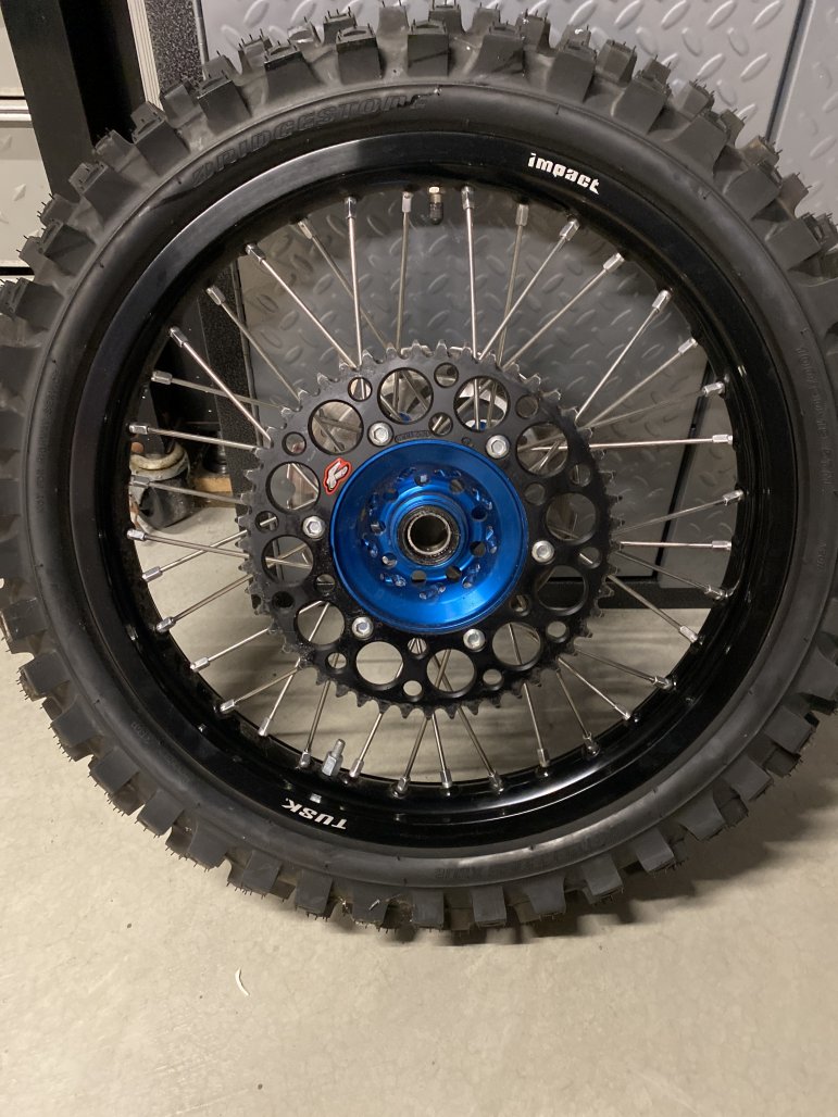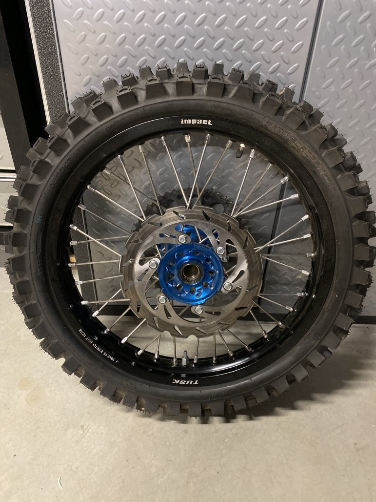 Set up for 2013 YZ250F, used 4x for Twisted sand track, Tusk Impact rim J 19x2.15, Tusk Impact hub, with 49 tooth Renthal Sprocket, and Tusk brake. Bridgestone Battlecross X20 tire Asking $450