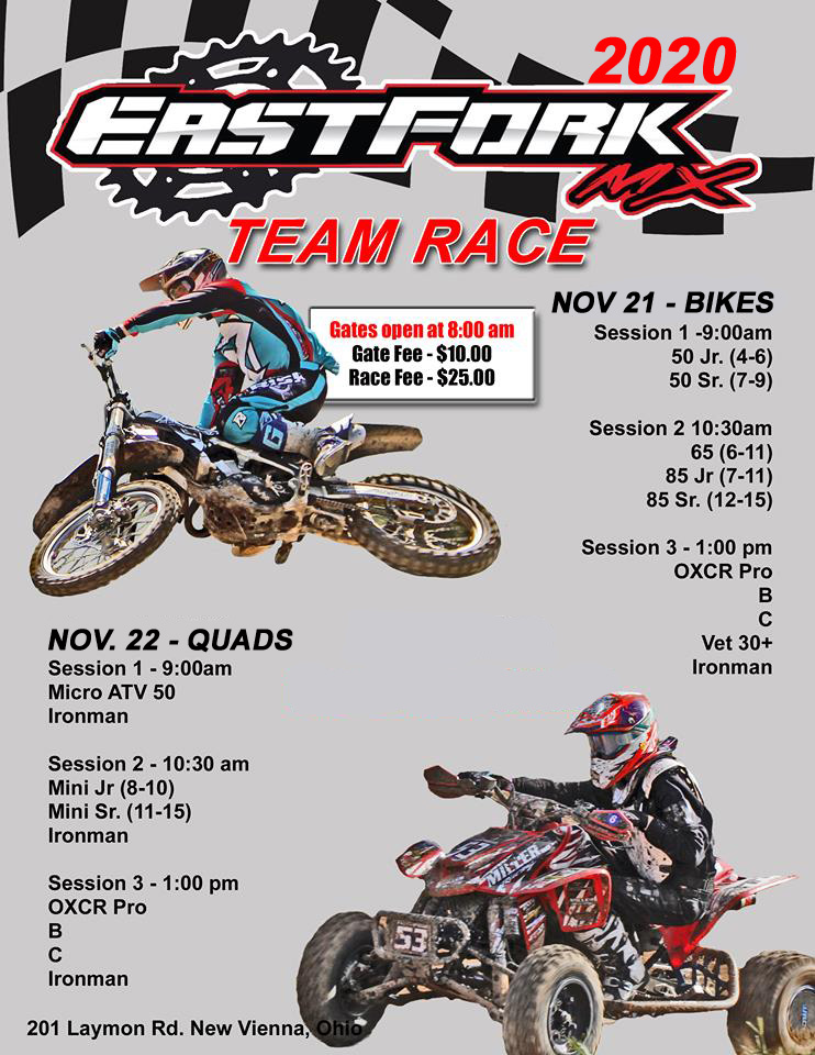 This weekend November 21/22 we will be putting the team hare scramble with a mixture of woods, grass track and mx track! Weather is looking awesome so if you are wanting to have a fun time grab a buddy and come on out! Info call myself at 513-266-2866