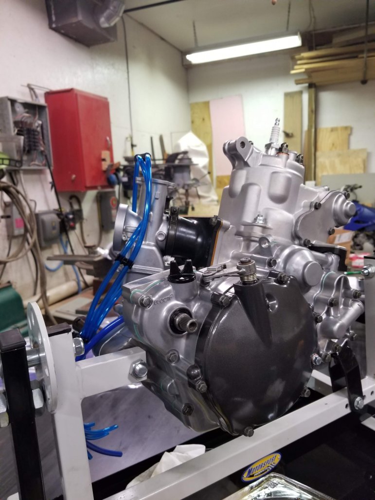 Motor was fully rebuilt from the cases up. All vapor blasted to look better than new. New bearings and seals throughout engine. Cylinder was just replated with new piston. I have all the footage of the motor re-assembly. Bike runs incredible. I've put 15 minutes of run time on the stand. Starts first kick perfectly.