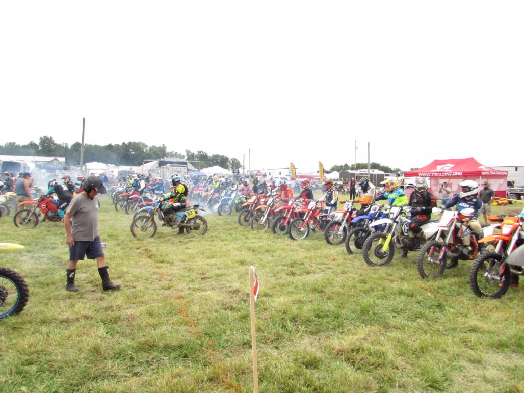 So he lines up, gets a mid pack start and gives it a go. Nancy and I went to the woods and was watching and waiting for him. He was delayed quite a long while trying to get that first lap in. He finally emerged back to the woods opening, got one complete lap in at the scoring tent and headed for the truck. As with my race earlier, they were backed and stacked on that hill climb, and after finally getting up the hill, he was done.