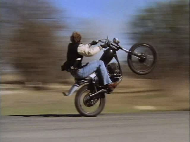 Not far into the movie came a scene where the main character (Timothy Bottoms), was presented with an old motorcycle that was his from years earlier. As the movie progressed, the motorcycle became prominent for one big action scene section of the movie.