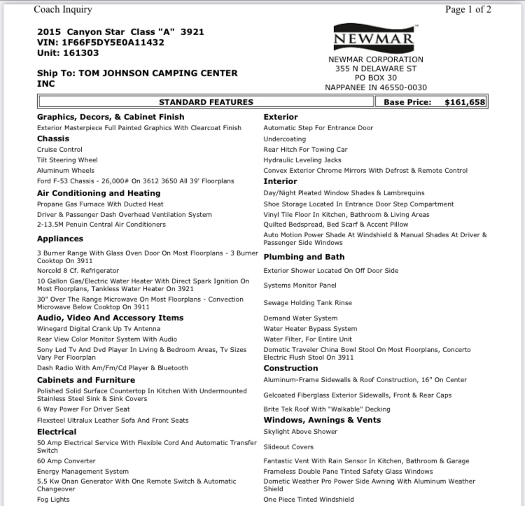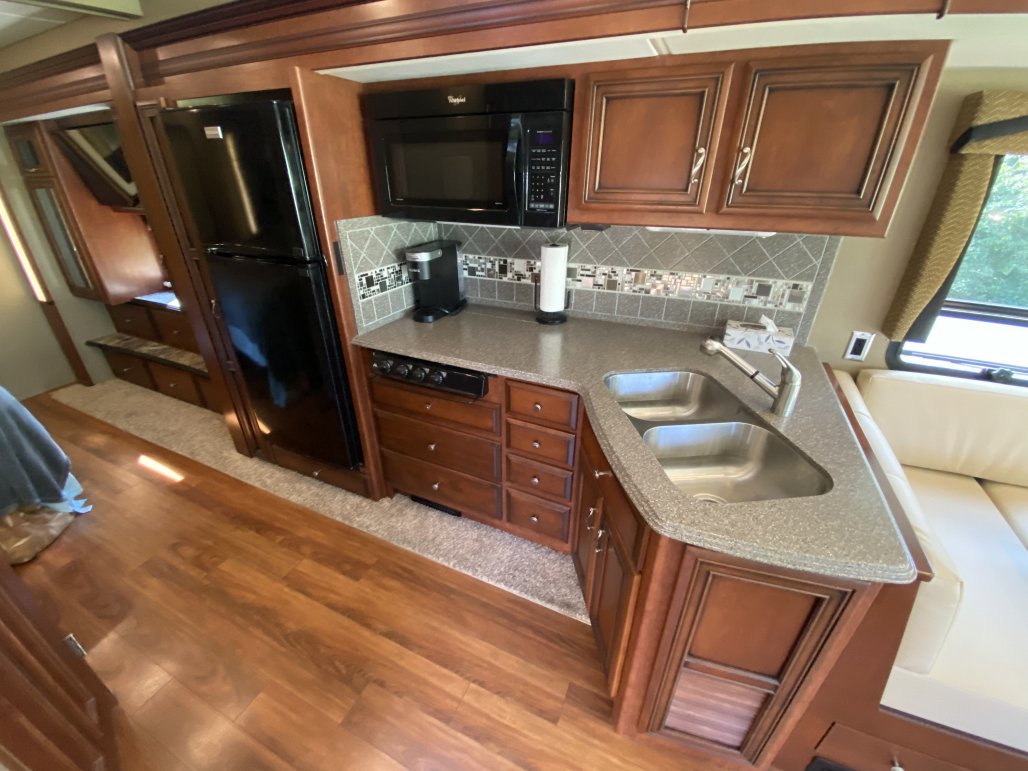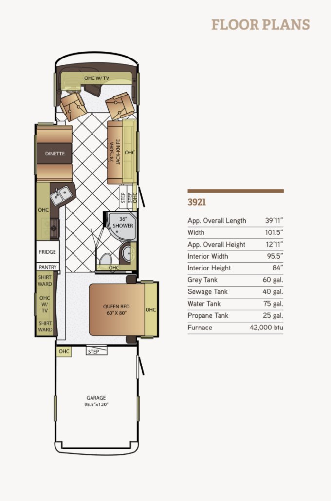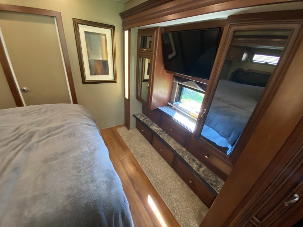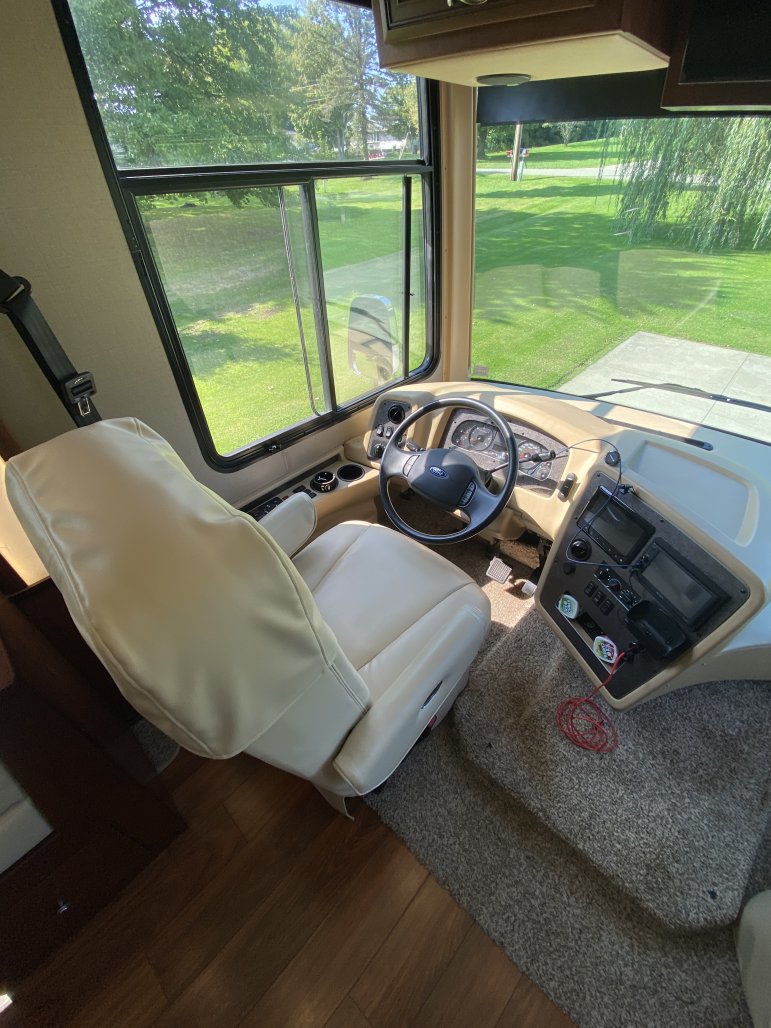 Excellent condition, very clean and meticulously maintained & always stored indoors in heated garage. This is a Ford F53 chassis with a gas V-10 engine that has 33k miles. The garage area is 95.5” wide X 120” long.