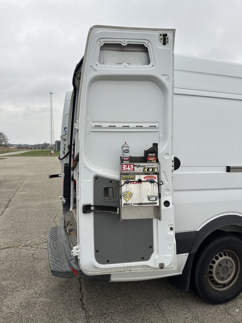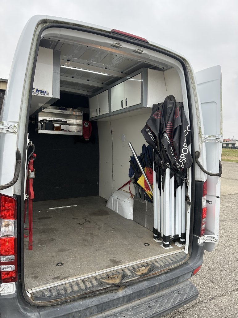 Motovan for sale. 2013 Mercedes Benz 170 2500 with 125,000 original miles. No Check engine lights on. Set up to haul 3 full size dirt bikes, 2 EZ-UPs, Power washer and everything that you would need on Race day. Built in 50 gallon SS water tank, plenty of storage, tinted windows, 2 extra seats with seatbelts and a nice sleeper bed. RB Componets cabinets and overhead storage.