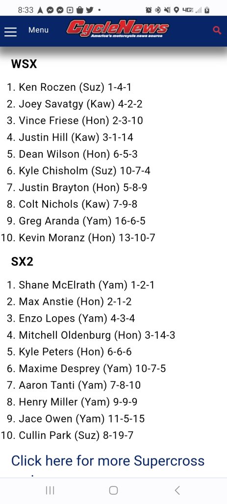 Has beens? LOL. So they get paid to race motorcycles. They absolutely would knock 20 guys off the gate at any of the nationals, and they are has beens? I guess the 20 guys they would knock off the gates would be never beens then? Right?