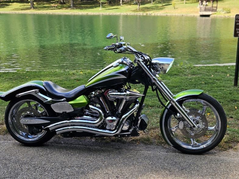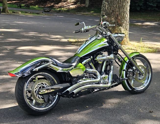 Freedom Performance Sharp Curve Pipes, Power Commander III USB Fuel Controller, Yamaha quick detach backrest (with lock), Professionally dyno tuned by Twin Cam Performance, Raw Design Front Stealth Turn Signals, Blaster X Integrated Tail Light, Kuryakyn Warrior Style Side Mount License Plate, Webslingers Custom Speedo and Dash Plates, 5" Foot Control Extensions, Kuryakyn ISO grips with spike ends, Scythe style mirrors, Removed rear brake disc cooler, Chrome rims, Avon 240 rear tire, Barons Slam kit with progressive spring, L&M Full Wrap front fender, Chrome Alternator Cover, Chrome Kuryakyn Levers, Chrome master cylinder covers, Custom Paint, Spike Air Cleaner, Chrome Pulley, L&M Seat, Chrome Axle Covers, Kury Stiletto front pegs, Cobra passenger floorboards, 3" spiked fork extensions, Star chrome caliper covers, Chrome switch housings, LA Choppers Handlebars, Victory headlight with Chilly's bracket.