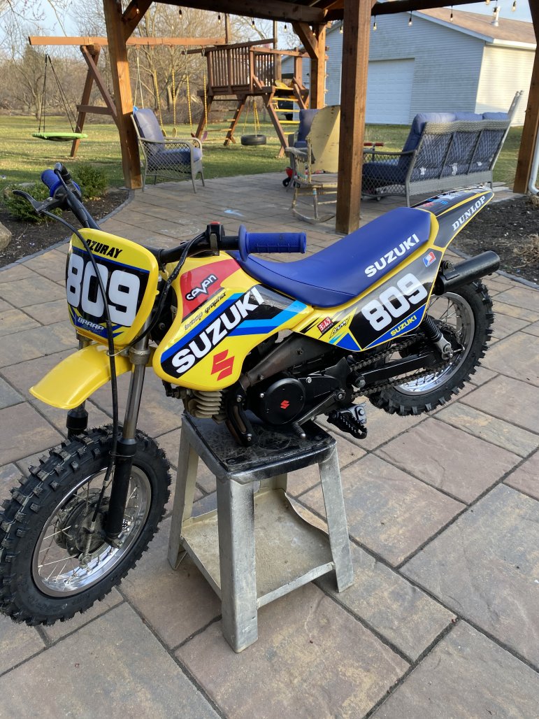 Well I’ve been working on a 2003 Suzuki JR50 during the winter with my little guy. Made a deal with a long time buddy and fellow old school Pitracer alum. Part of the crew from Parma so you know we are all slightly questionable folk.