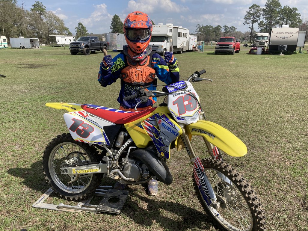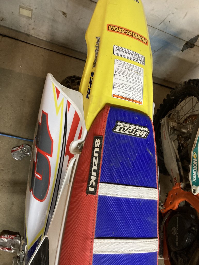 Anyway the bike ran when I got it but had been through some years of riding. I changed out bearings and tires. New grips and seat cover. A few new pieces of plastics, which a whole kit for this bike is 250!!!! So I painted the plastics yellow. Ordered some new graphics and I think it came out pretty cool. My little guy is hyped. I need a few more small things but I wanted to post a few pics.