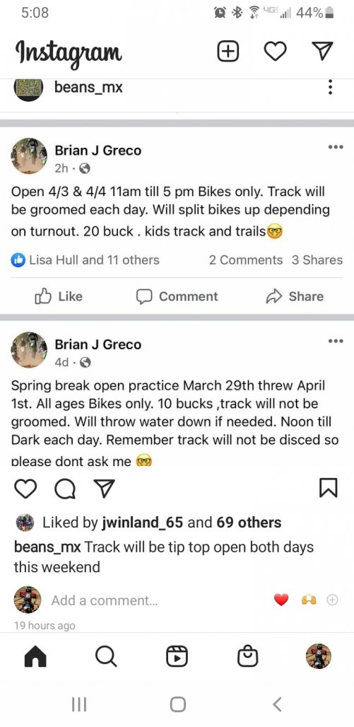 Don’t have that either. The boy had school and work this week. Next week is looking good weather wise. Hope someone opens up for mid week moto.