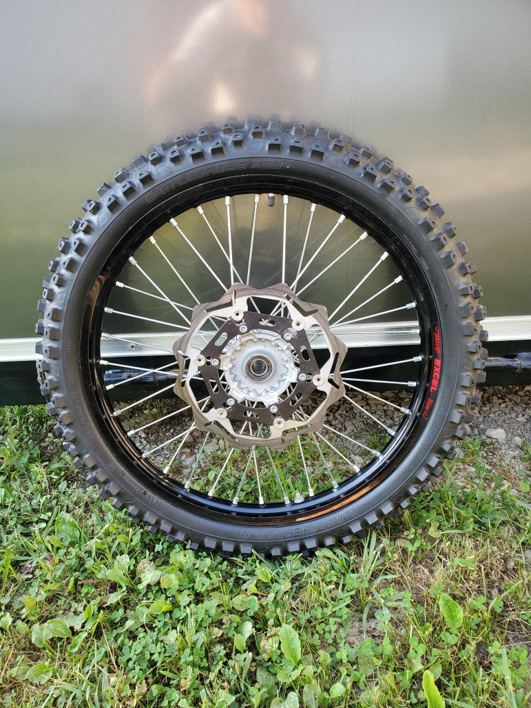 For sale is a complete OEM front wheel with a Bridgestone Battlecross X30 tire. I used this as a spare for my 2017 YZ450FX, but it will fit a 250F/450F for a number of years from 2012 and up. The tire is at about 75%. The only reason I'm selling is because I now have a bike with blue rims. Asking $200 OBO.