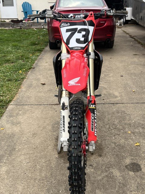 2020 CRF 450 - Factory Connection suspension, Factory Connection rear link, Works Connection radiator braces, Works connection clutch perch, Works Connection skid plate, Rekluse Torqdrive clutch pack with clutch cover, spare clutch pack, pro circuit radiator hoses, Dubya/talon front wheel, Yoshimura "works edition" exhaust, chain & sprockets have 3 rides on them, tires have 3 rides on them. Bike is in excellent shape and needs nothing. Spare set of red plastic and stock exhaust come with the bike.
