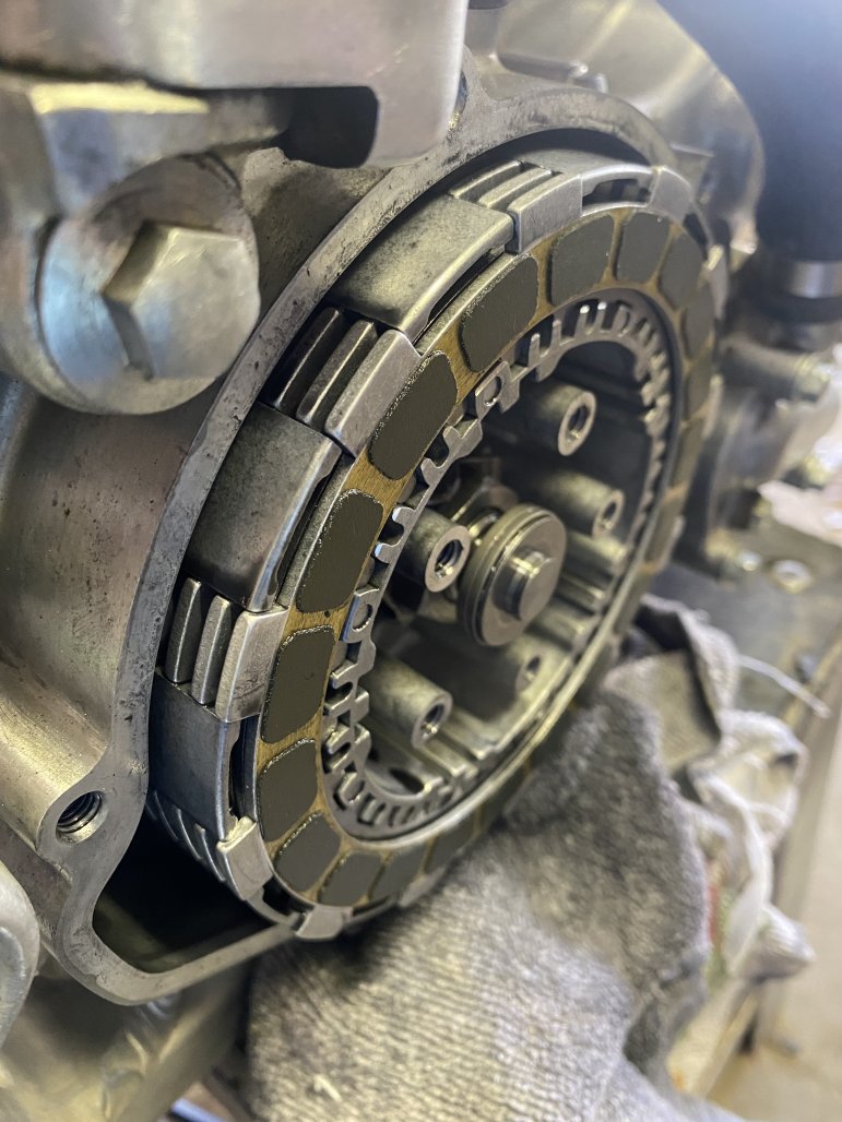 You have the basket, then you start with a fiber. Then metal, then fiber. Building the stack to end up with ther fiber at the very end. That will be the one that will apply friction to thr pressure plate