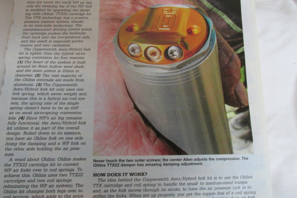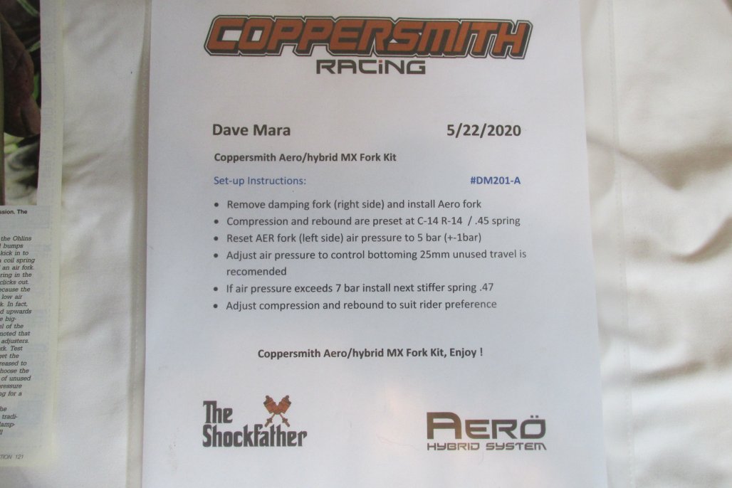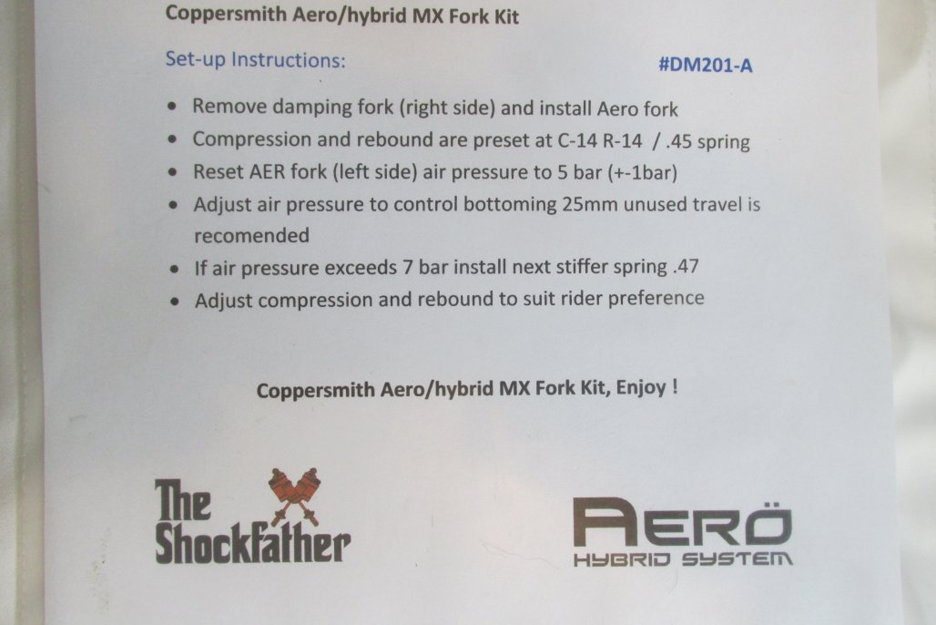 Only has aprox 40hrs on this 1 sided Ohlins system by Coppersmith. Was on a 2018 Husky FC450 Set for 180Lb B rider. It allows you to run 1 spring(.45) on the 1 side, and half the amount of air pressure on the other fork leg(75psi instead of 150psi). All at half the weight added back on with a double spring conversion. This was the best suspension set up ive ever had in last 30yrs. Coppersmith was praised on many magazines, and now sells this same exact system for $1400. Cash only, call or text(8one4)3two3-1four9seven