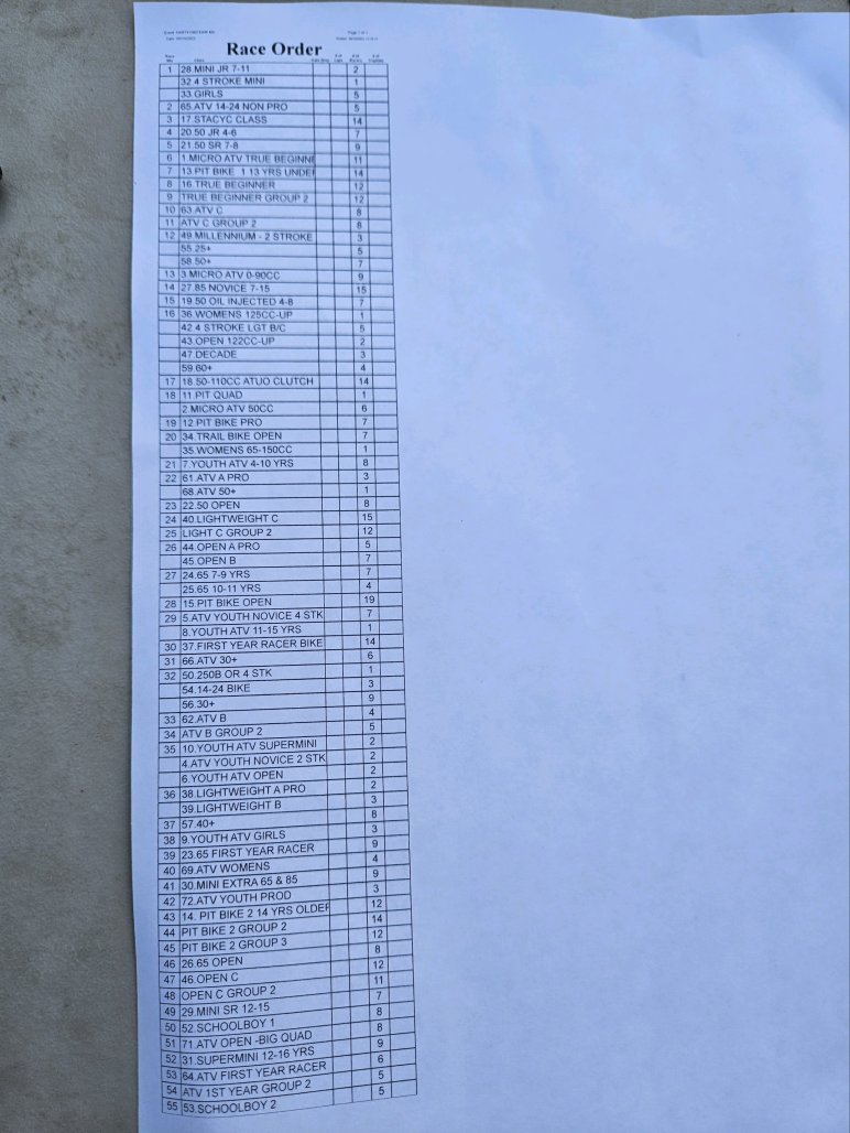 I’ve read the class list from fast traxx promoting and I honestly don’t get it at all. They need to just take the Oma class structure that has both bikes and atvs and run that. Program would run so much smoother and the entries wouldn’t be 1-4 people per class