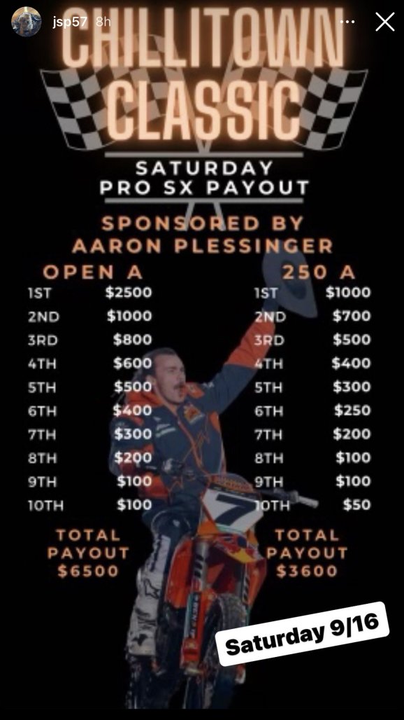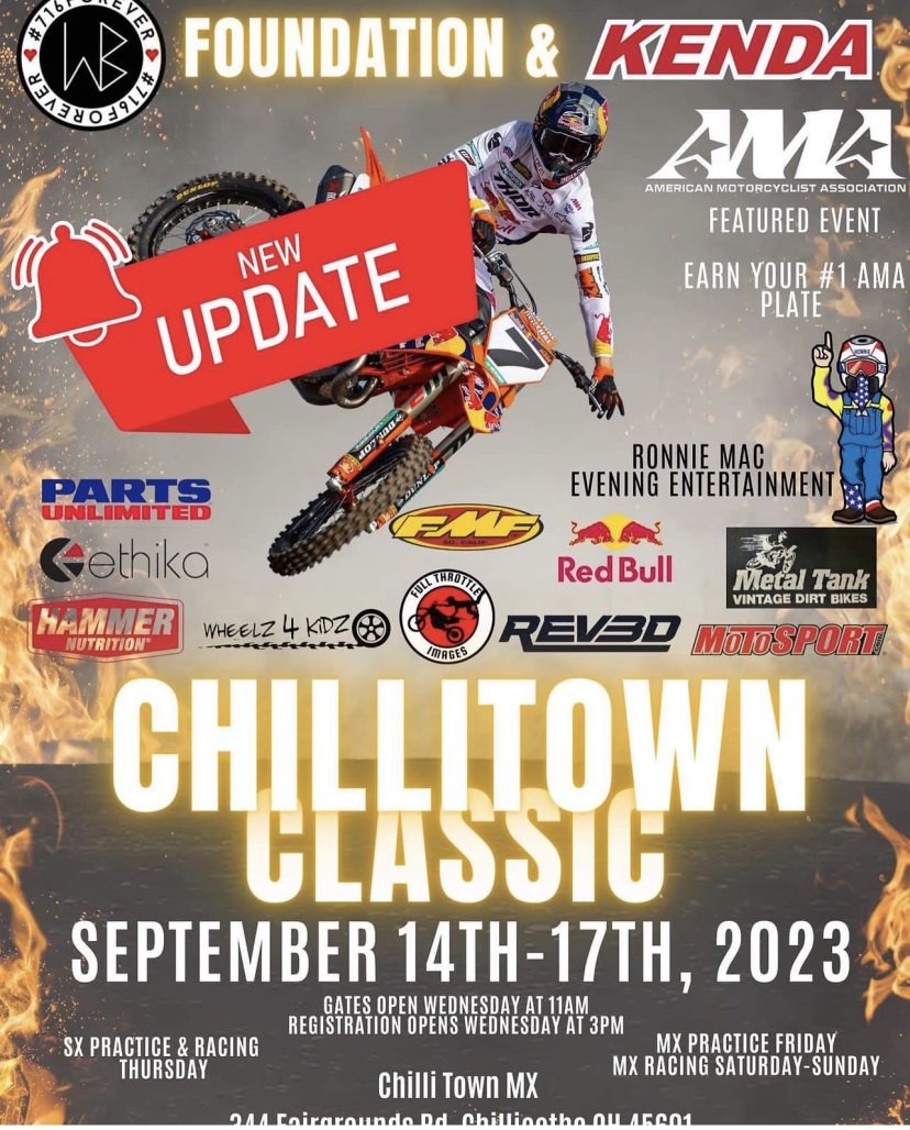 AMA Featured event September 14th -17th with supercross racing, followed by motocross racing. There will be alot of after hour activities throuhout the week. Mark your calenders for a week of racing and fun. Early signup link. https://secure.tracksideprereg.com/ctmx/index.asp?event=14&l=4&scrto=eventSelect#eventSelect