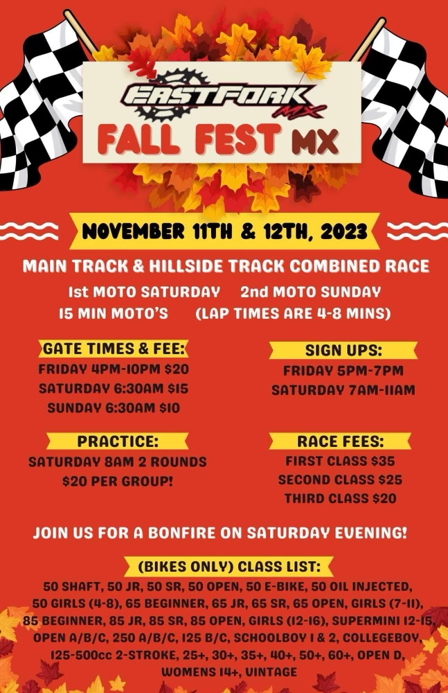 663dad PR Addict Nov 7, 2023 #1 Two days of racing, the hillside and motocross track combined. Come out for non-AMA or series race. 15 minute motos as well. Attachments 8BB31588-52FA-4E12-867E-C9E374D31F3C.jpeg 262 KB · Views: 234 Last edited: Nov 8, 2023