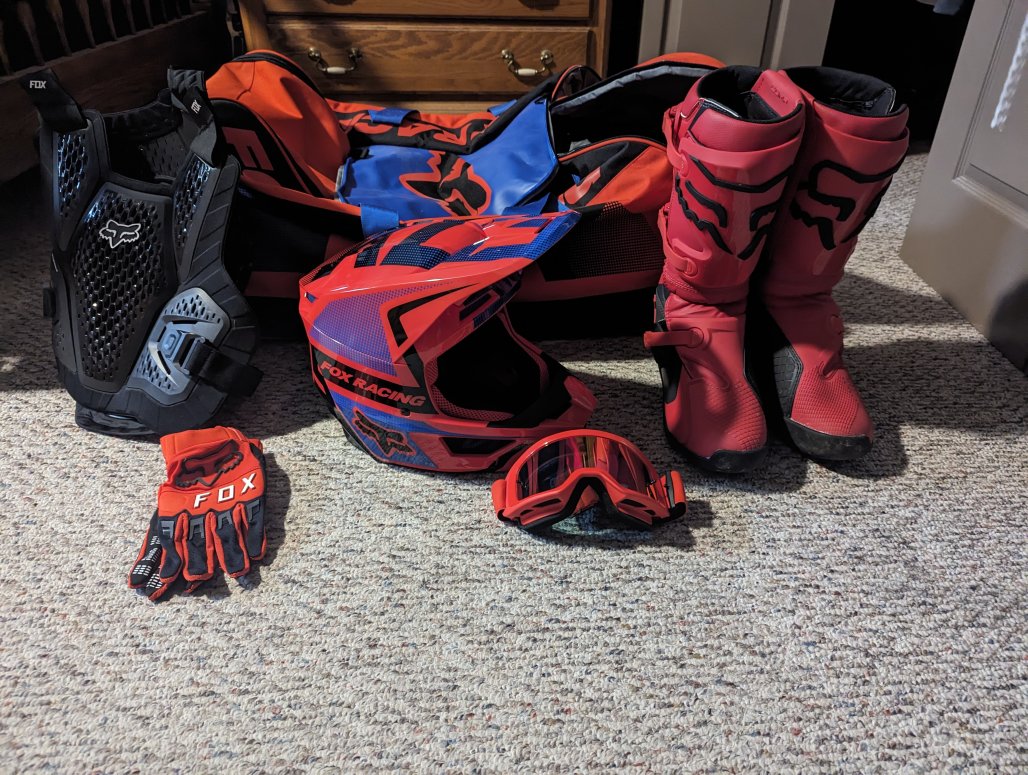 I have new fox gear never worn other than to try on. Xl helmet, size 13 boots, goggles, gloves, under jersey chest protector, black and white pants 42 waist and XXL matching jersey. All packaged up in the large fox gear bag with extendable handle and wheels. $200 takes it all