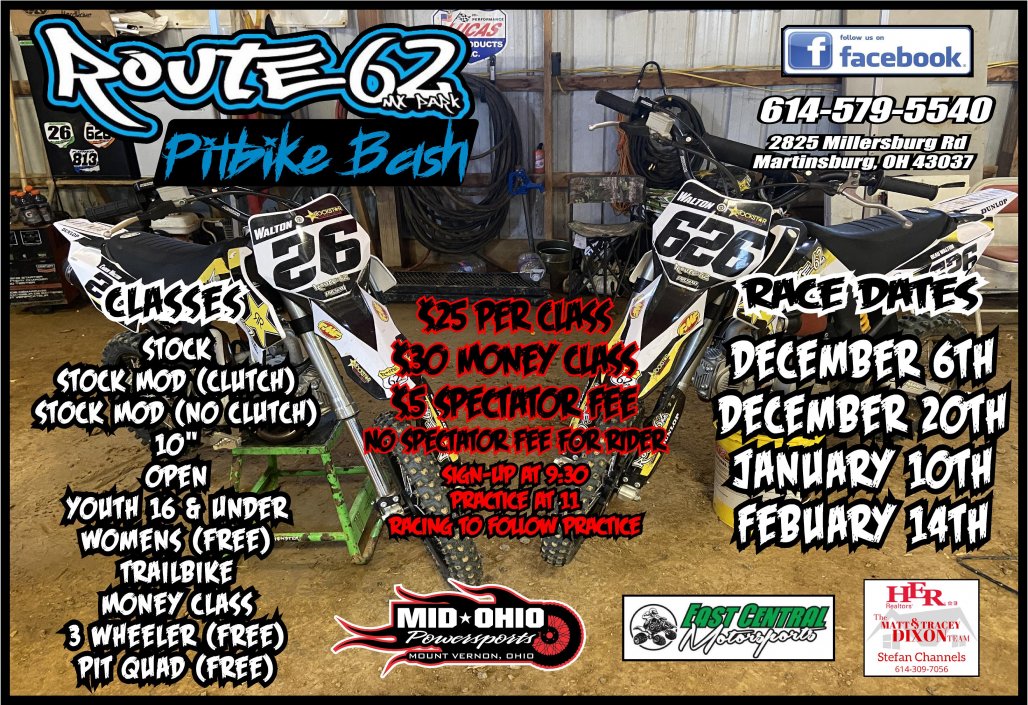 Weeks schedule is Wednesday 4-830 indoor practice Saturday 10-3 indoor practice! Sunday is PITBIKE RACING