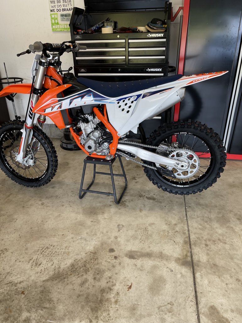 He only rode it once so far at Grears yesterday. He loves it, which is good because it was not a planned purchase. I sold his 2021 KTM 250SXF for crazy money for a 55 hour bike, had a good deal lined up on a new Honda 250F that fell through due to dealer not receiving inventory. AES had this available and they have been great to deal with with all his other KTM,s so why not.