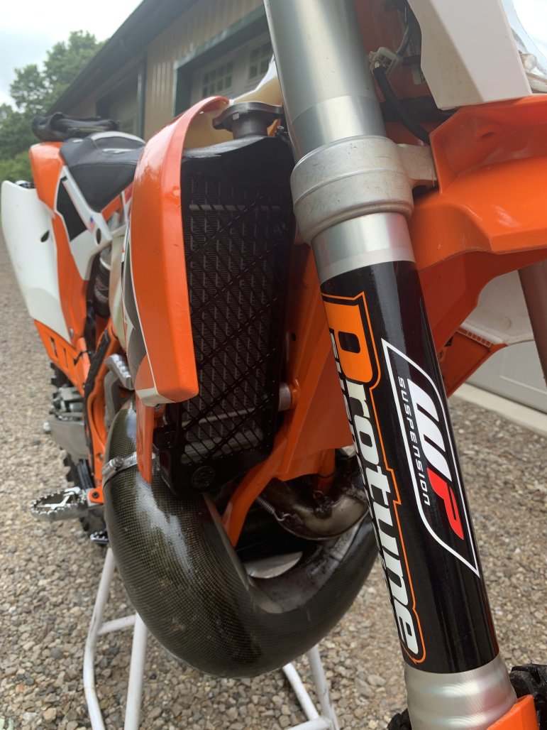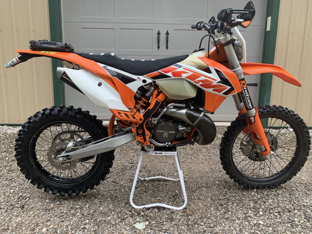 This 2015 KTM 300 XCW is titled/plated in Ohio. I bought this used in the fall of 2018 with just around 200 hours/3800 miles. Now the bike is at 265.7hrs/4755 miles. Ridden almost exclusively off-road in single-track or Wayne National Forest. No racing. The bike was well-maintained and I kept detailed records of maintenance/upgrades/etc. Almost religious-levels of oil/air filter changes and washes. Basically new top end with Slavins kit (252.4hrs/4548miles) and rebuilt suspension by Protune Suspension (261 hrs/4703miles). $5200.