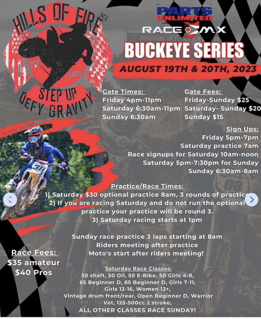 For those who did not make it out, everything ran smoothly, with mid day track prep on Saturday to keep the track fresh. Sunday the track was much better, but dried out in some of the rollers and down hill jumps, this was to be expected with a forecast of 88 degree temperatures, and a natural terrain track. Parking was good, but full, I think if the campers parked a little closer to each other then you could have parked a few more rigs. The owners have put in a lot of time and money invested and plan on getting some additional new soil added , saw dust to help break down some of the clay. The track had very few rocks, the owners rock hounded the crap out of the track and the drive lanes was paved with them. The total rider turnout for their first race was around 360, not bad when considering tristate Mx had a race and the Columbus crew who race the Buckeye Series stayed close to home and raced at Honda Hills. Racing was done by 4pm on Sunday.