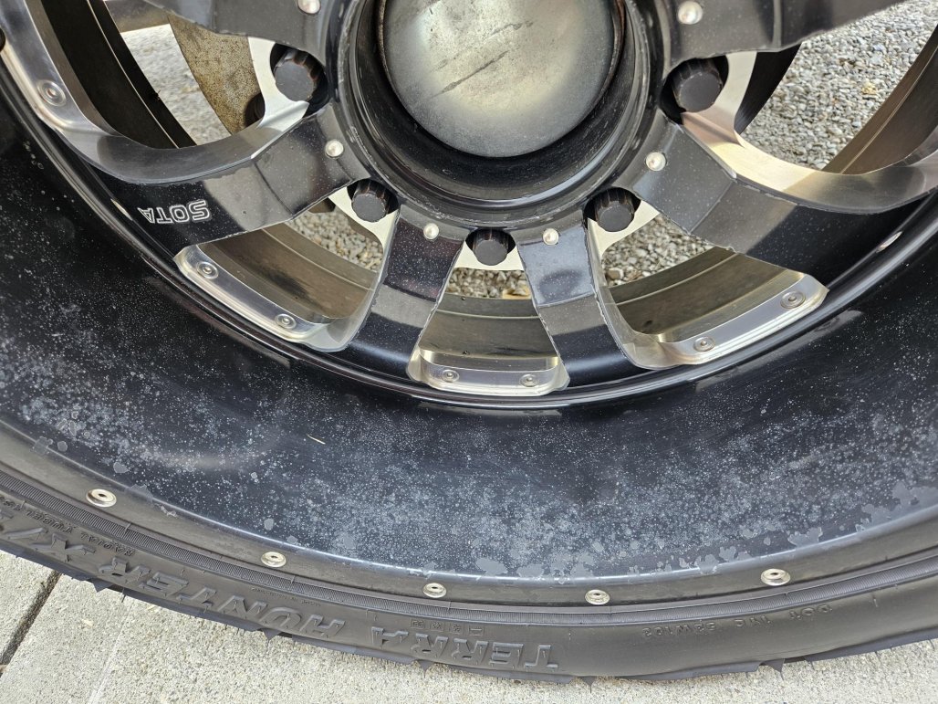 I also have a set of Nitto Trail Grapplers in about the same shape that will go with these. So they come with two sets of tires that hold air and ride good.