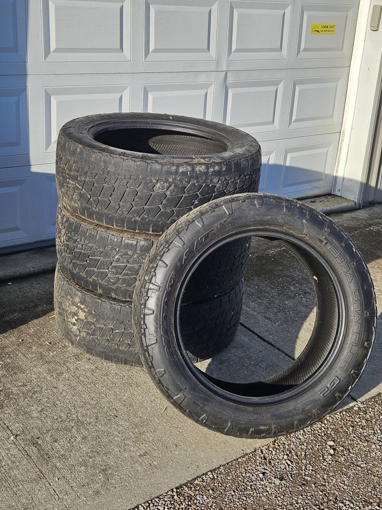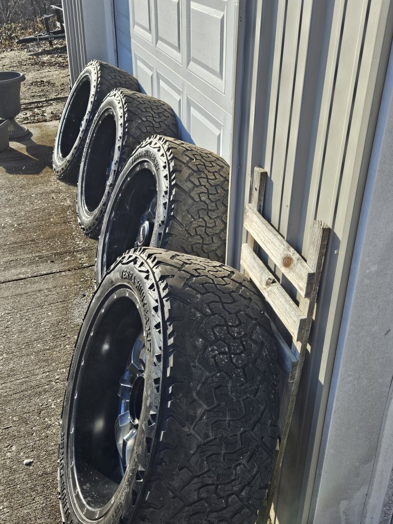 I went another direction this summer. These tires hold air and still have quite a bit of life left. They ride good, and have TPMS sensors in them that I was not able to match up to my truck. They should fit 2011- Up GM 3/4 ton trucks. I have locking lug nuts that go with them.