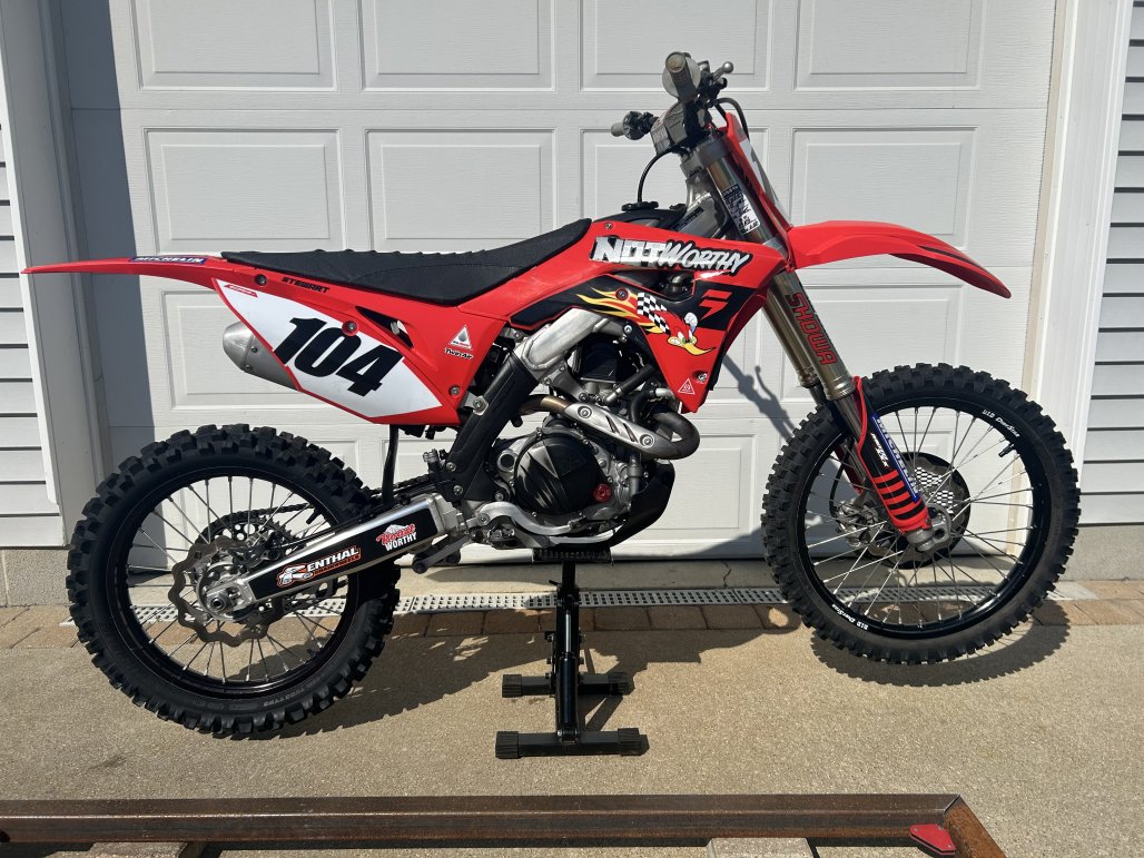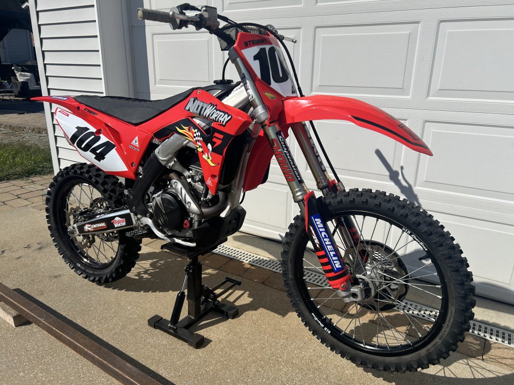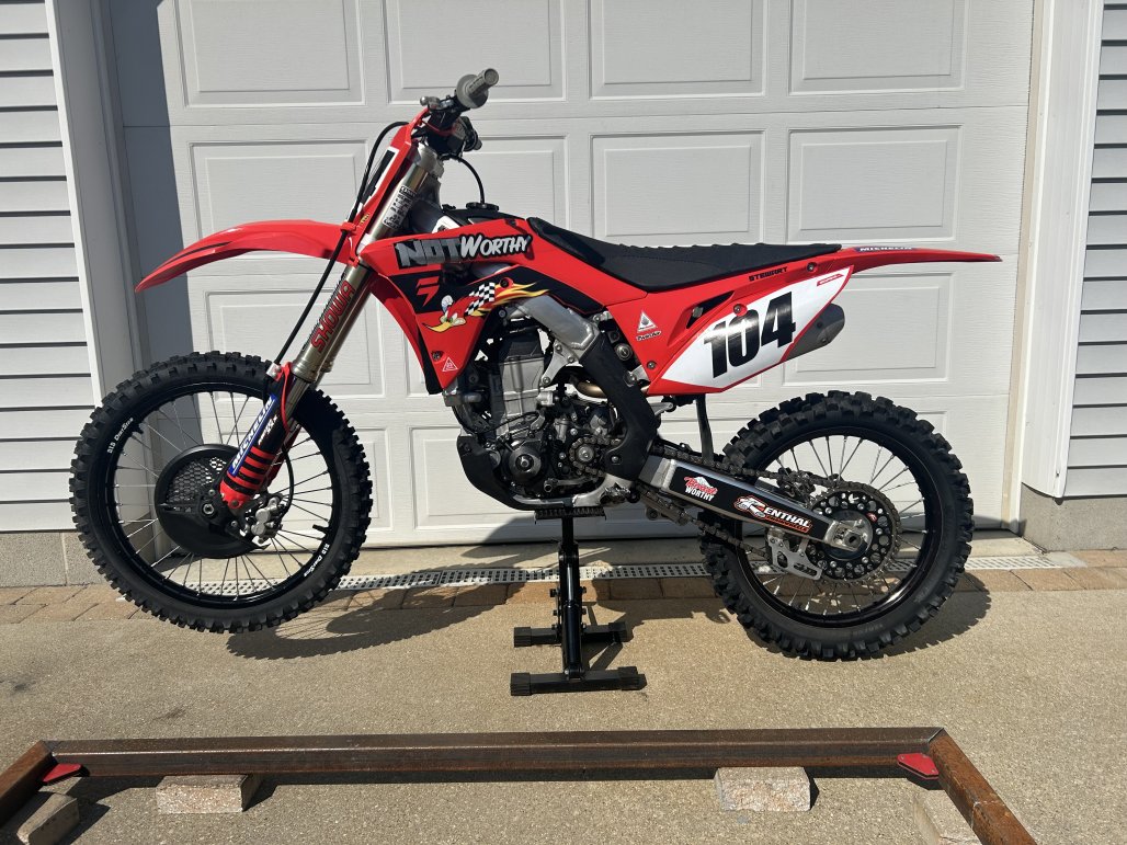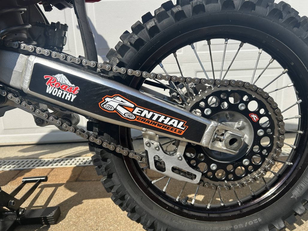 With Title. All stock with some Works Connection and Renthal parts. Starts easy. Well maintained, no stripped bolts or janky repairs. 4 air filters and Twin Air airbox wash cover. New clutch and exhaust packing. Fresh rebuilds on forks (8 hours) and shock (0 hours). Oil changes every 5 hours and air filter every ride. $4100 Call or text Three-Zero-Four-638-9171